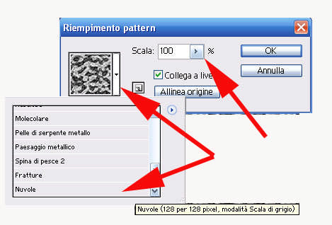 Scegliamo il pattern che preferiamo (in questo caso useremo le nuvole), modifichiamo il valore della scala e clicchiamo su ok.